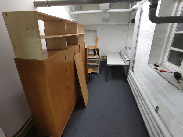Wir haben noch ein paar kleinere Ecken ein wenig nach-gestrichen und anschließend den Teppich verlegt. Der Teppich soll den Boden schützen und außerdem die Akustik im Raum verbessern. Anschließend haben wir angefangen Möbel aufzubauen und in die Werkstatt zu räumen. Die geplanten kleinen Reparaturen am Dach (ein paar Kabel fixieren) haben wir auf Grund von Dunkelheit, Kälte und Wind auf kommende Woche verschoben.