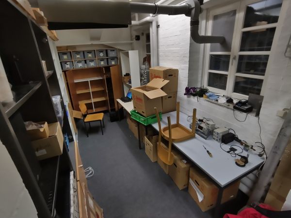 Nachdem wir letzte Woche die Werkstatt mit den Möbeln vorerst fertig eingerichtet haben (es sollen später noch ein paar Möbel getauscht werden), haben wir diese Woche viel eingeräumt und teilweise auch schon aufgebaut. Zudem haben wir weiter altes Zeug ausgemistet und vor allem Elektro-Schrott entsorgt.