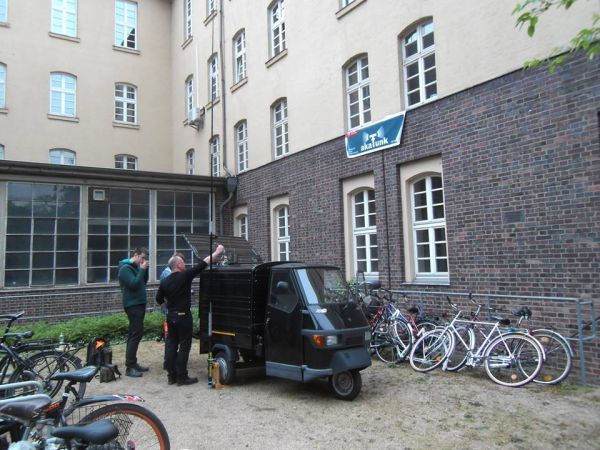auf den Fahrradständern ist ein provisorischer Tisch errichtet.