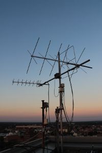 VHF steht dabei für Very High Frequency und beschreibt den Ultrakurzwellenbereich. Dort liegen sowohl das 6m- als auch das 2m-Band. UHF steht für Ultra High Frequency und beschreibt den Mikrowellenbereich. Für den Amateurfunk nutzbar sind dabei das 70cm-, 23cm- und 13cm-Band. Mit unserem Funkgerät kann man auf den beiden am häufigsten benutzten Bändern (2m und 70cm) funken. Dabei stehen verschiedene Antennen zur Auswahl, die per Patchpanel mit dem Funkgerät verbunden werden können.